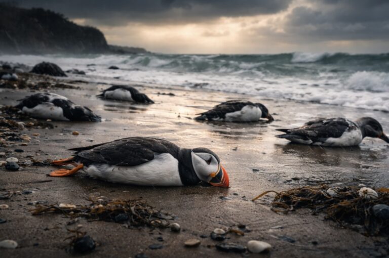 Britain’s coastline has become a grim sight this winter. Conservation groups report hundreds of dead and weakened seabirds washing ashore after a succession of powerful Atlantic storms. Puffins, guillemots and razorbills are among the species most visibly affected, prompting fears…